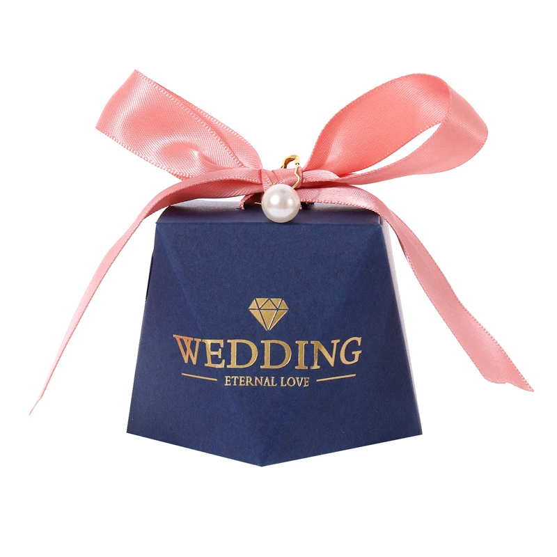 Diamond-Shaped Gift Boxes with Golden “Wedding” Text & Ribbon – Perfect for Weddings, Party Favors, Baby Showers, and Holiday Gifts, Wedding Gift Boxes|